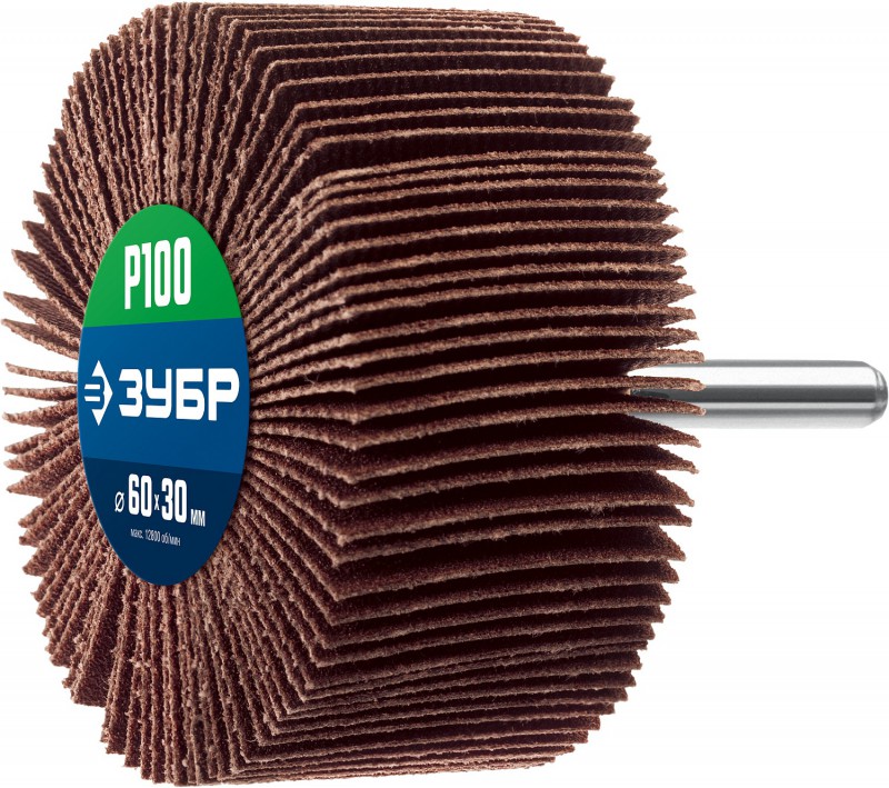 Круг шлифовальный лепестковый 60*30*6 мм Р100 на шпильке ЗУБР Профессионал (36602-100)